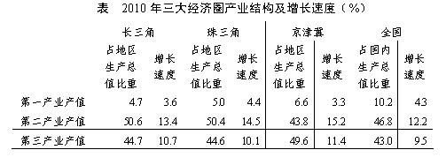 三大经济圈中,2010年三次产业增长速度均超过全国平均水平的有几个?