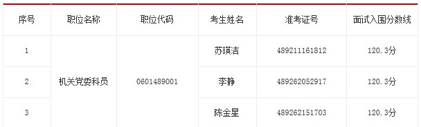 面试人员按照招录职位考生公共科目笔试总成绩从高到低的顺序,按计划招录人数1:3的比例确定。