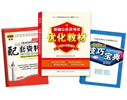 很多考生存在这样的认识误区:根据教材名称来判断教材是否具有针对性,这是错误的。一套教材是否具有针对性,应该视其内容而定。(一)题型。本套教材讲解题型与甘肃公务员考试完全一致,无一遗漏。(二)技巧。掌握解题技巧是公务员考试备考的关键之一,本套教材对解题技巧进行了详细的归纳和解读,将最大限度地帮助你丰富解题方法,提高解读速度。(三)真题。本套教材精选了近年来国家公务员考试真题和甘肃公务员考试真题,能够让考生切实体会考试难度,最大化地达到训练的效果。